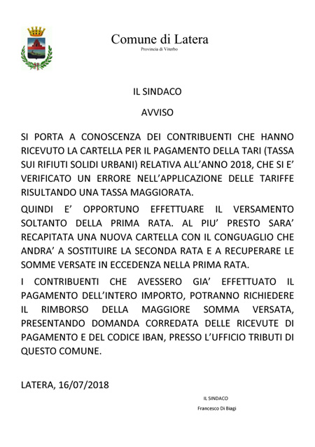 TARI 2018 - Errore nell'applicazione delle tariffe