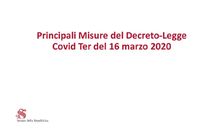 Emergenza epidemiologica COVID-19 - Principali misure del Decreto-Legge Covid Ter del 16 marzo 2020