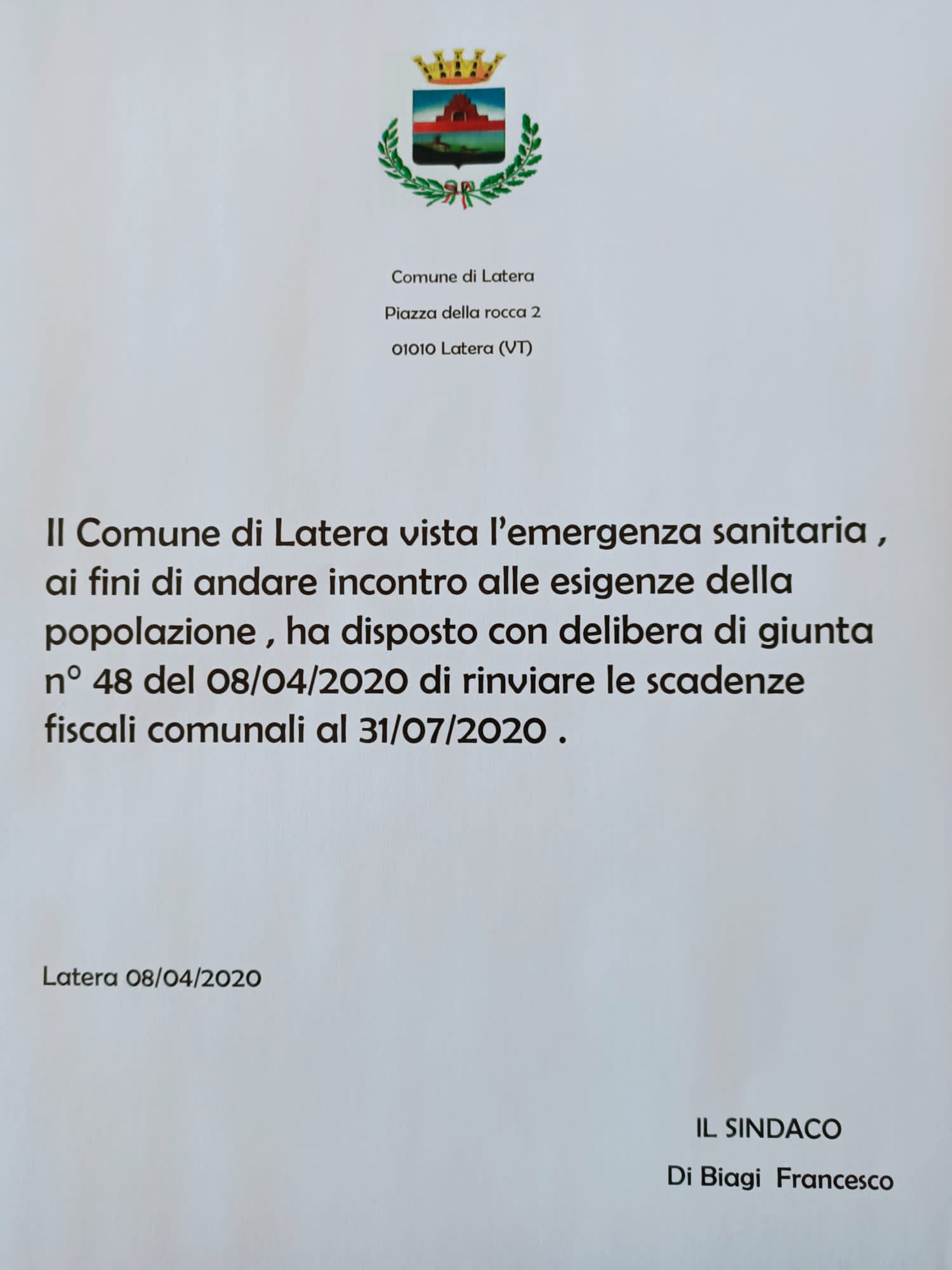 Emergenza epidemiologica COVID-19 - Avviso riguardo rinvio per le scadenze fiscali comunali