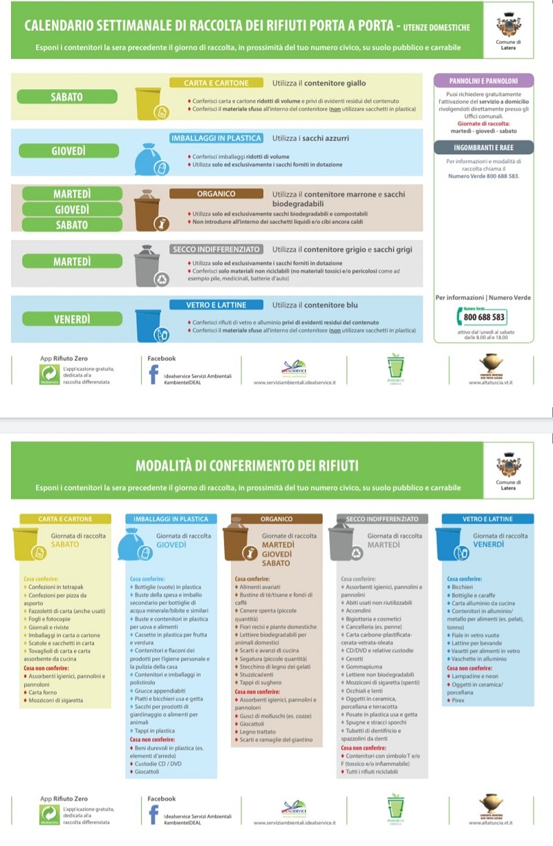 Calendario settimanale di raccolta dei rifiuti porta a porta - Utenze domestiche