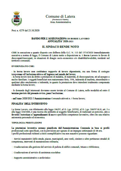 Testo Download Modulo di domanda (Pdf - 181 Kb) A cura di Comune di Latera 0761 459 041 Mail: affarigenerali@comune.latera.vt.it